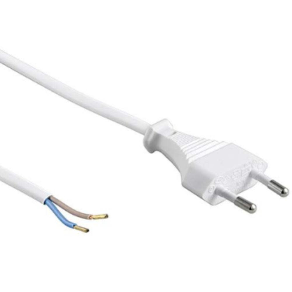 Dies ist ein weißes, zweipoliges Elektrokabel mit offenem Ende, geeignet für Verkabelungsprojekte. Das Kabel hat eine Gesamtlänge von 3,1 Metern und ist ideal für erweiterte Reichweiten bei verschiedenen Installationen oder Reparaturen.