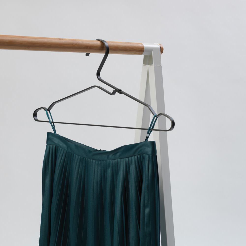 Diese Kleiderbügel bestehen aus eloxiertem Aluminium und sind sowohl langlebig als auch leicht.