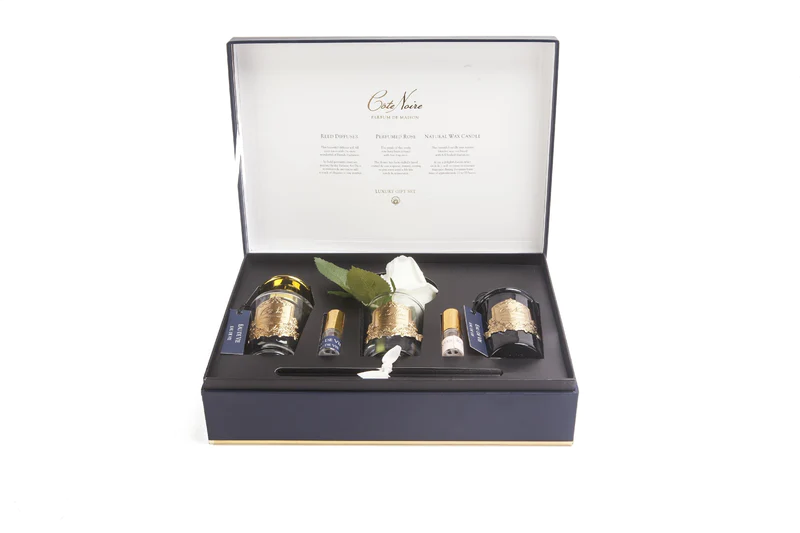 Côte Noire Eau de Vie Geschenkpaket – Blume, Kerze und Diffusor – GP04