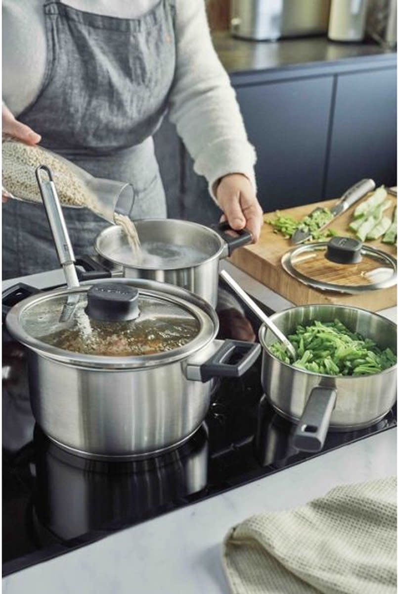 Kartoffeln und Gemüse kochen, Soßen dazu geben, Suppe köcheln lassen und gleichzeitig Pudding zubereiten? Mit diesem Comfort 3-Basisset von Demeyere wird es Ihnen nie an einer guten Kochpfanne mangeln. Dank der Glasdeckel haben Sie mühelos alles gleichzeitig im Blick. Ihr breiter Edelstahlrand verleiht ihnen noch mehr Stabilität. Der praktische Kochtopf rundet Ihren Kochkomfort ab. Die Bakelit-Griffe sind perfekt befestigt und liegen angenehm in der Hand. Comfort 3 ist praktisch und zuverlässig.
