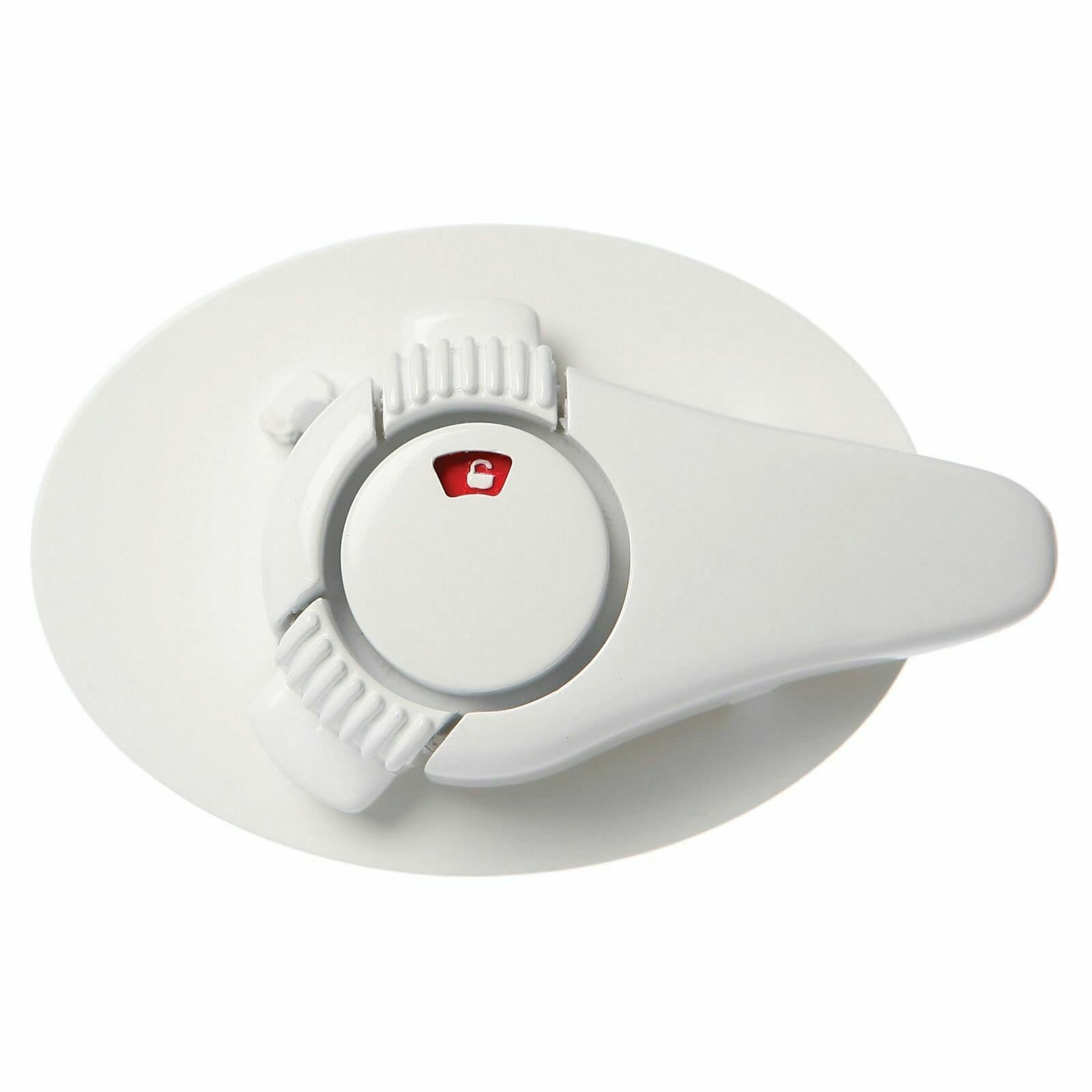 Das Schloss lässt sich einfach an Ihren Haushaltsgeräten anbringen, indem Sie die mitgelieferte hitzebeständige, selbstklebende Rückseite verwenden, mit der der Riegel die Türen mit einem sicheren Verriegelungsmechanismus fest an Ort und Stelle hält. Der Zugang ist einfach, allerdings nur für Erwachsene, indem einfach auf den seitlichen Riegel geklickt und die Stange in die grüne, entriegelte Position gedreht wird.