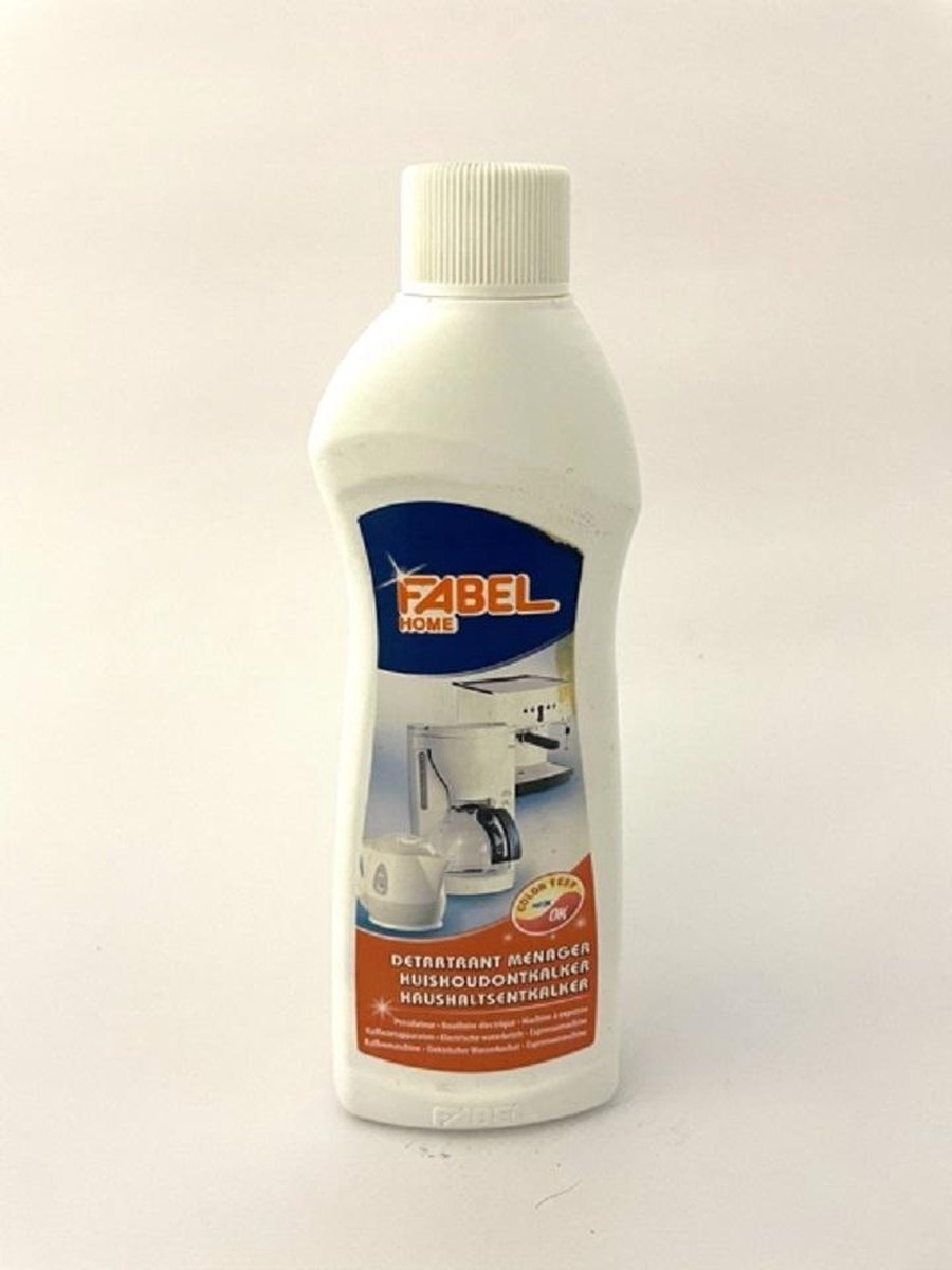 Der Haushaltsentkalker von Fabel ist schnell und effizient für Kaffeemaschinen, Wasserkocher, Espressomaschinen usw. Farbtest garantiert Wirksamkeit. Schützender Korrosionshemmer für Metall.
