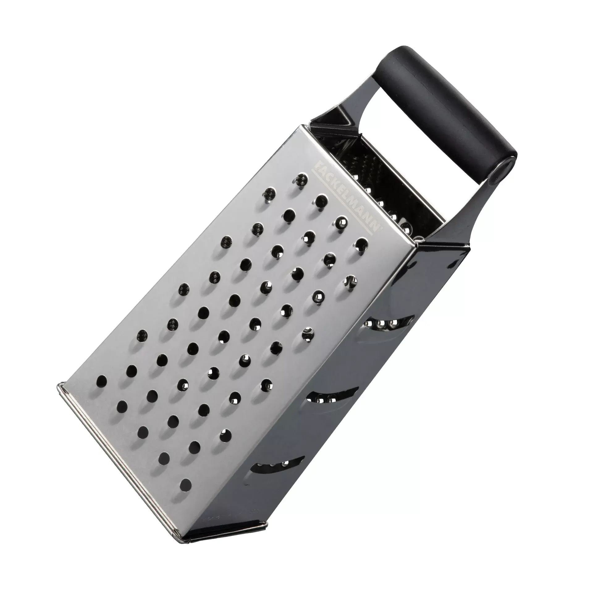 Die Fackelmann-Reibe bietet vier Funktionen in einem: Streifen, Scheiben, mittleres und feines Reiben. Ideal für Gemüse, Schokolade, Käse und Obst, für jeden Anlass die passende Reibefunktion.