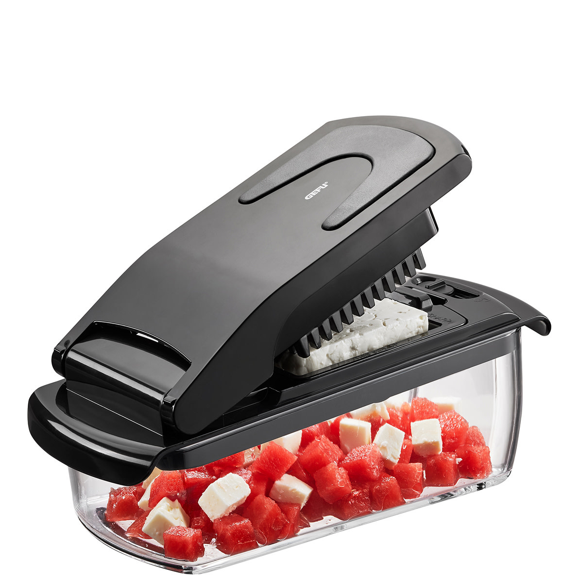 Der Treppo Würfel- und Streifenschneider bietet eine schnelle und einfache Möglichkeit, Obst und Gemüse in Würfel oder Streifen zu schneiden. Mit zwei extrascharfen Klingeneinsätzen schneidet dieser Allesschneider mühelos und gleichmäßig die gewünschten Zutaten. Ob Sie kleine Würfel und Streifen für gesunde Salate und Suppen oder gröbere Würfel und Streifen für Pommes und Eintöpfe benötigen, der Treppo-Hobel bietet Vielseitigkeit. Darüber hinaus eignet es sich hervorragend zum Würfeln von Zutaten wie Feta.