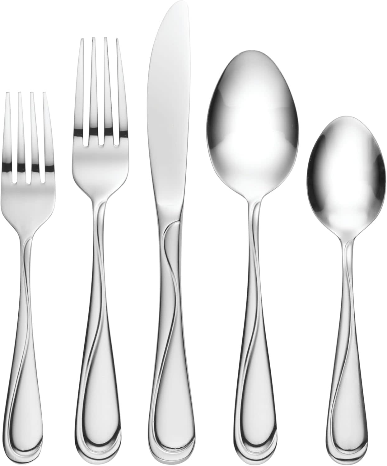 58-teiliges Besteckset aus 18/0 Edelstahl mit modernem Wellen-Design und Hochglanzfinish. Service für 8 Personen inklusive zusätzlicher Teelöffel und Servierbesteck. Spülmaschinengeeignet und ideal für große Familien oder Gäste.