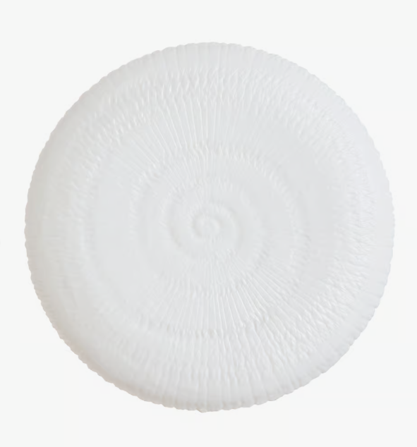 Das Design, das von einem Ammoniten, einer Spiralmuschel, inspiriert ist, sorgt für eine einzigartige Note. Die glatte Oberfläche bildet einen angenehmen Kontrast zur unkonventionellen, porösen Unterseite. Der erhabene, unregelmäßige Rand sorgt für einen unverwechselbaren Look. Empfohlen für Fleisch- und vegetarische Gerichte. Ein von der Natur inspiriertes Muster ermöglicht eine mutige und überraschende Tischdekoration.
