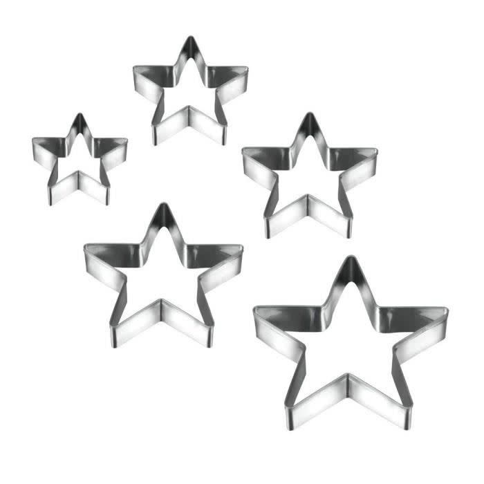 Machen Sie die leckersten Kekse mit diesen Metaltex-Backformen. Die Formen haben die Form von Sternen und sind in fünf verschiedenen Größen erhältlich.