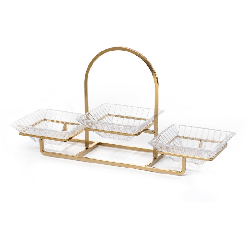 Novell Serviergestell Gold mit 3 Glasschälchen