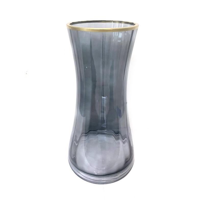 Paldinox Glasvase, grauer Goldrand, H28D15cm