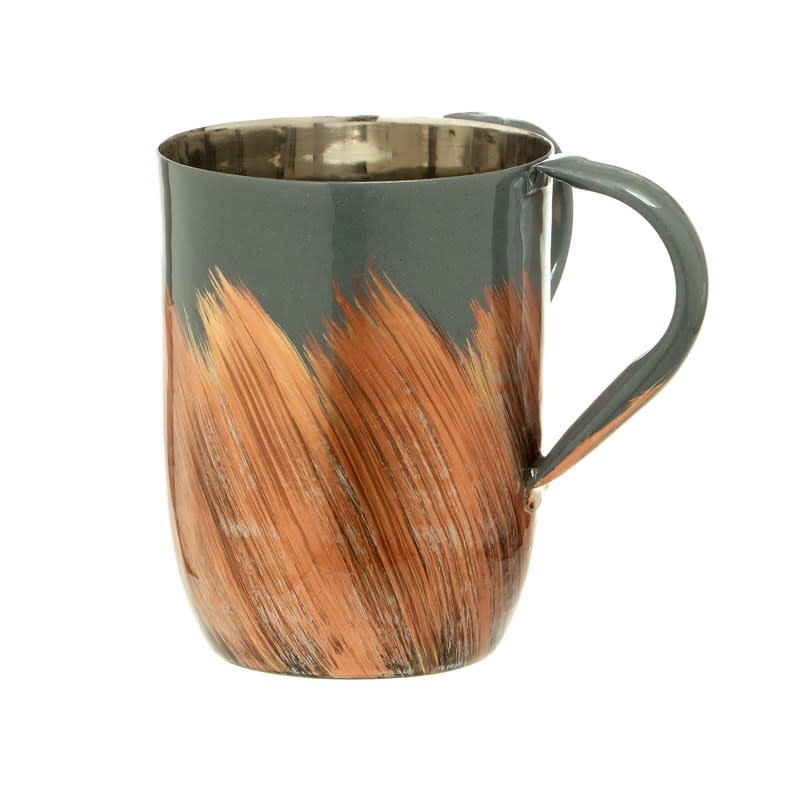 Paldinox Waschbecher, dunkelgraue Emaille, bernsteinfarbene Pinselstriche