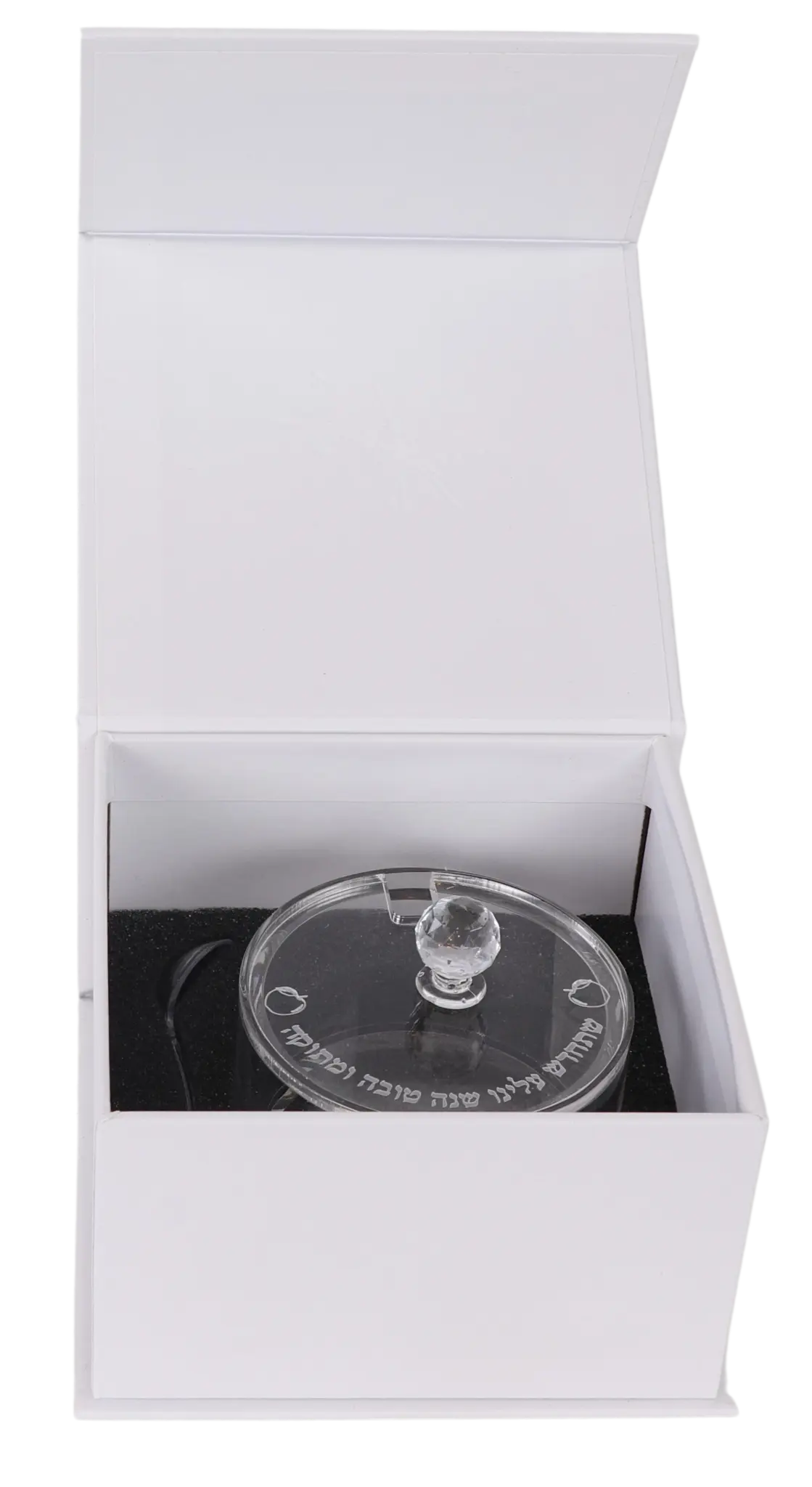 Dieses elegante Honiggericht ist perfekt für Rosch Haschana, das jüdische Neujahr, Sukkor und andere besondere Anlässe. Es wird mit einem gravierten Design und einem passenden Löffel geliefert und ist somit eine schöne Ergänzung für Ihre Tischdekoration.