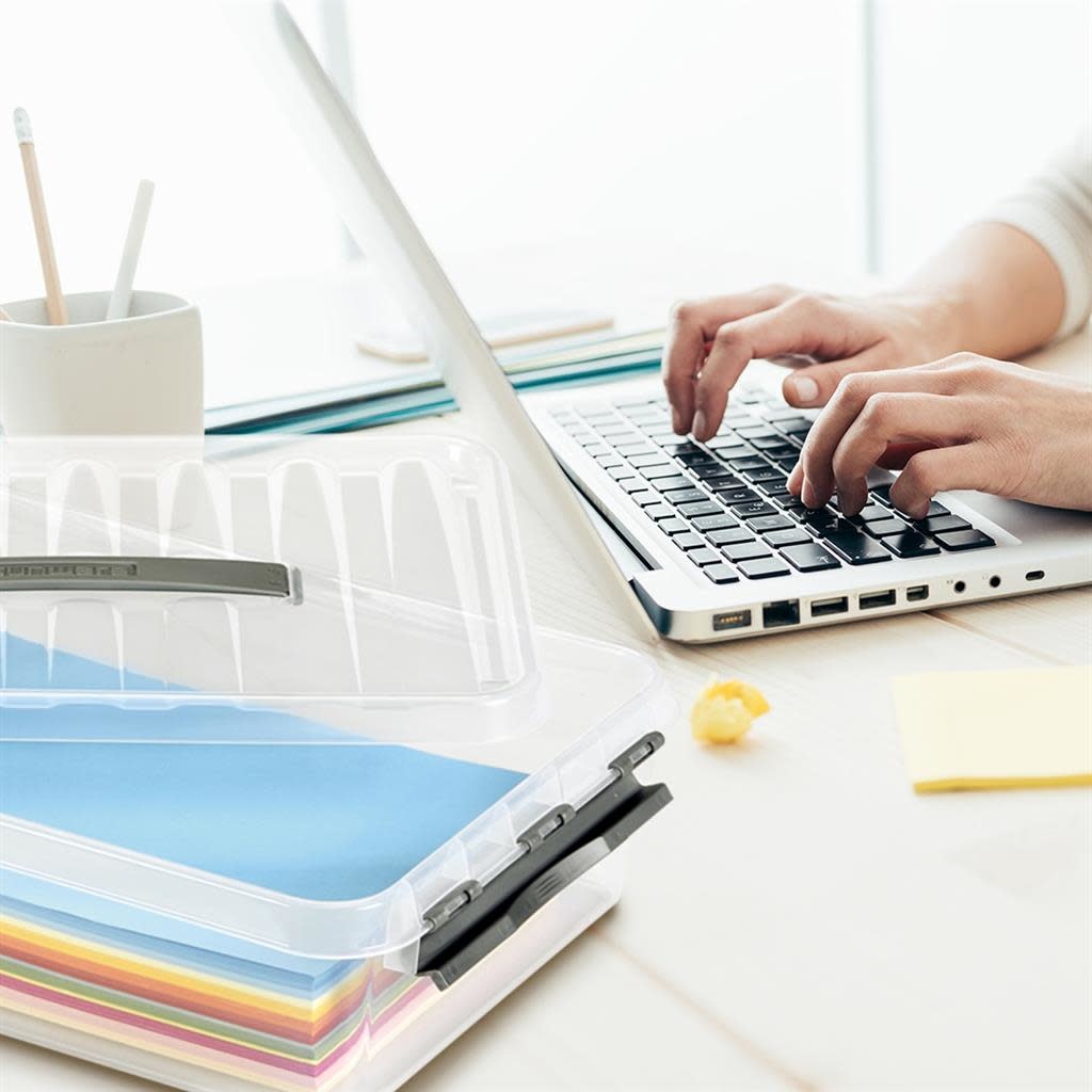 Die Q-line 10-Liter-Aufbewahrungsbox hat es in sich! Eine einfache, aber multifunktionale, feuchtigkeits- und staubfreie Aufbewahrungsbox für Ihre wichtigen Gegenstände. Da die Box innen A4-Format hat, können darin alle Arten von Papieren und Dokumentationen sicher aufbewahrt werden.
