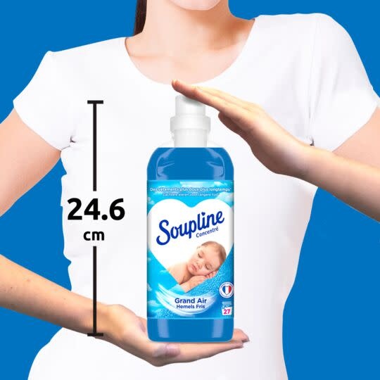 Entdecken Sie die neue Soupline Grand Air in der zu 100 % recycelten Plastikflasche und parfümieren Sie Ihre Wäsche mit der Frische luftgetrockneter Wäsche. Soupline verleiht Ihrer Kleidung einen Hauch von Weichheit und Liebe.
