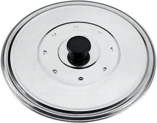 Edelstahl-Spritzschutzdeckel, Durchm. 14–25 cm Universalgröße. Einfach zu säubern. Mit mehreren Öffnungen, damit der Dampf richtig entweichen kann. Passend für Töpfe und Pfannen von 14 bis 25 cm.