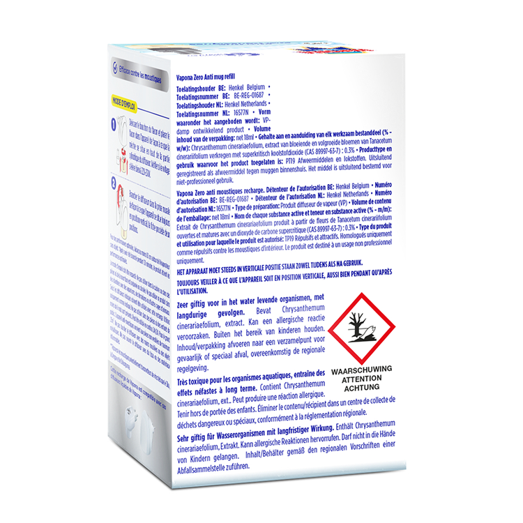 Parfümfreie Nachfüllung für Vapona-Mückenschutzgeräte. Bis zu 45 Nächte Schutz vor Stechmücken und Tigermücken – auch bei eingeschaltetem Licht. Passend für alle Vapona-Geräte.
