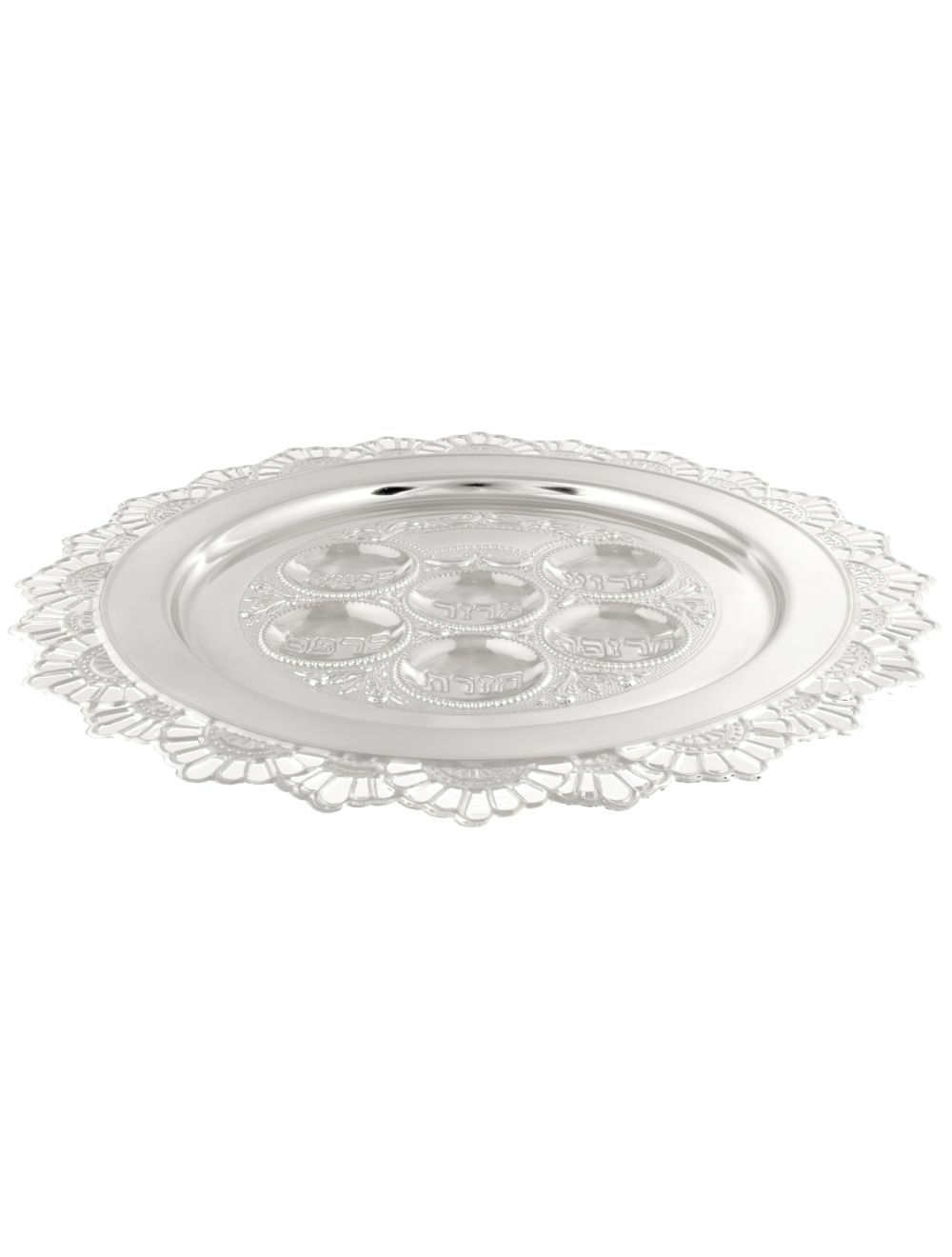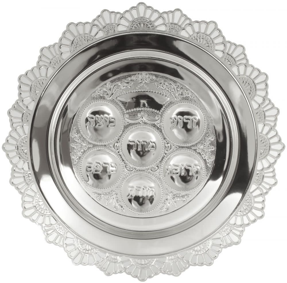 Assiette de Seder avec bordure perforée décorative, plaque argentée, 38 cm