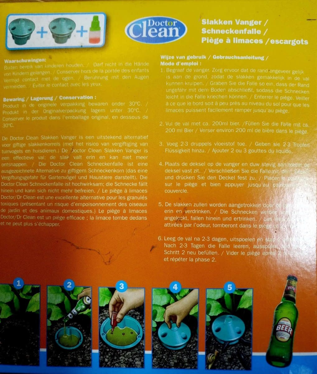 Attrape-escargots en un rien de temps contre ces escargots ennuyeux ! Doctor Clean® Snails Vanger attire les escargots dans le piège grâce au liquide spécialement formulé, l'escargot tombe dedans et ne peut plus s'échapper. L'attrape-limaces est non toxique.