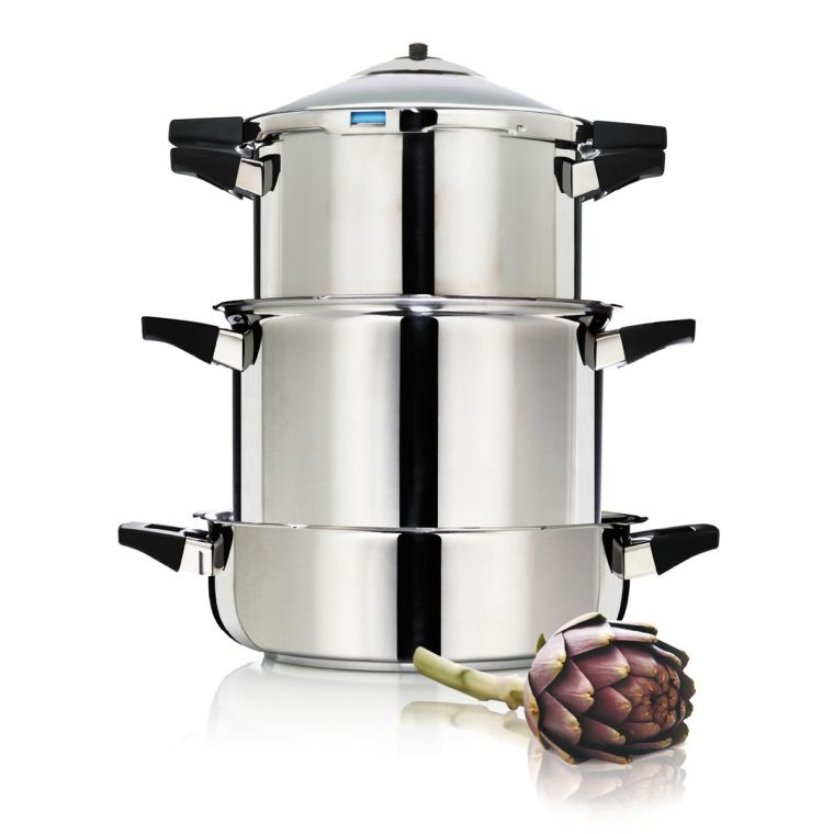 La cuisson dans le DUROMATIC® est jusqu'à 70 % plus rapide et les vitamines et les nutriments sont préservés</ fort> bien mieux. Par exemple, cuisiner dans une cocotte minute permet de conserver deux fois plus de vitamine C* que cuisiner dans une batterie de cuisine normale. De plus, vous économisez jusqu'à 70 % d'énergie. Le triple mécanisme de surpression assure la sécurité à tout moment.