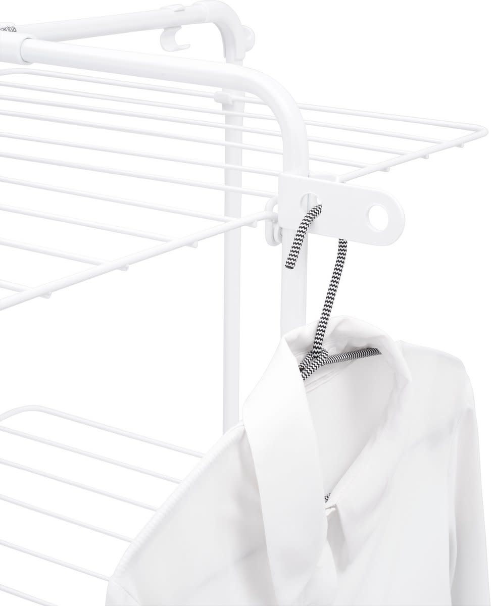 Ses quatre niveaux pliables permettent de sécher aussi bien les petits vêtements que les articles longs comme les pantalons et serviettes. L’espacement optimal des fils favorise une meilleure circulation de l’air.
