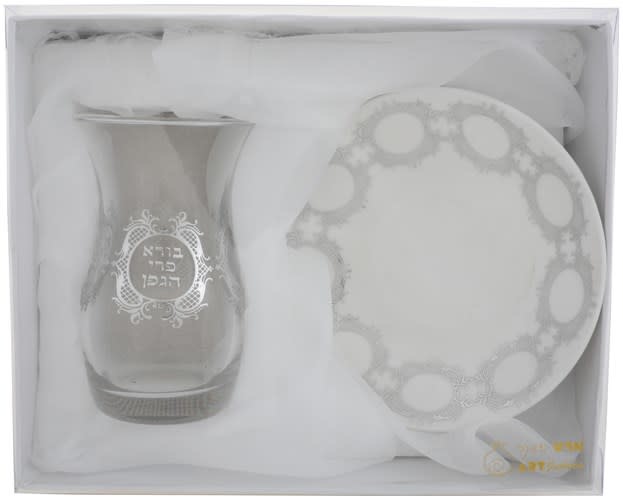 Tasse de Kiddouch en verre d'art avec soucoupe en céramique - 10 cm
