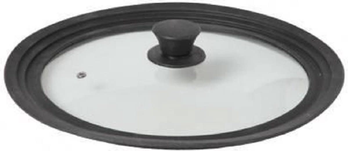 Ce couvercle de poêle s'adapte aux casseroles d'un diamètre de 20 à 24 cm. Le couvercle est en verre et possède un bord en silicone.