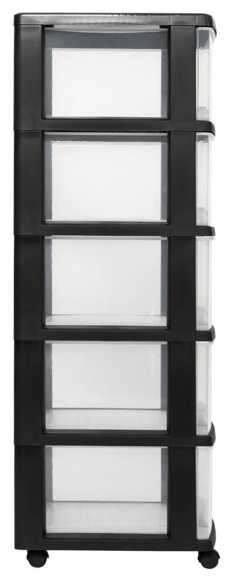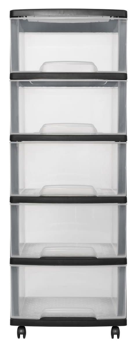 Le système de tiroirs Curver Essentials est équipé de 5 tiroirs spacieux de 20L chacun, avec des roulettes pratiques pour la mobilité et la durabilité. Idéal pour un rangement organisé à la maison ou au bureau.