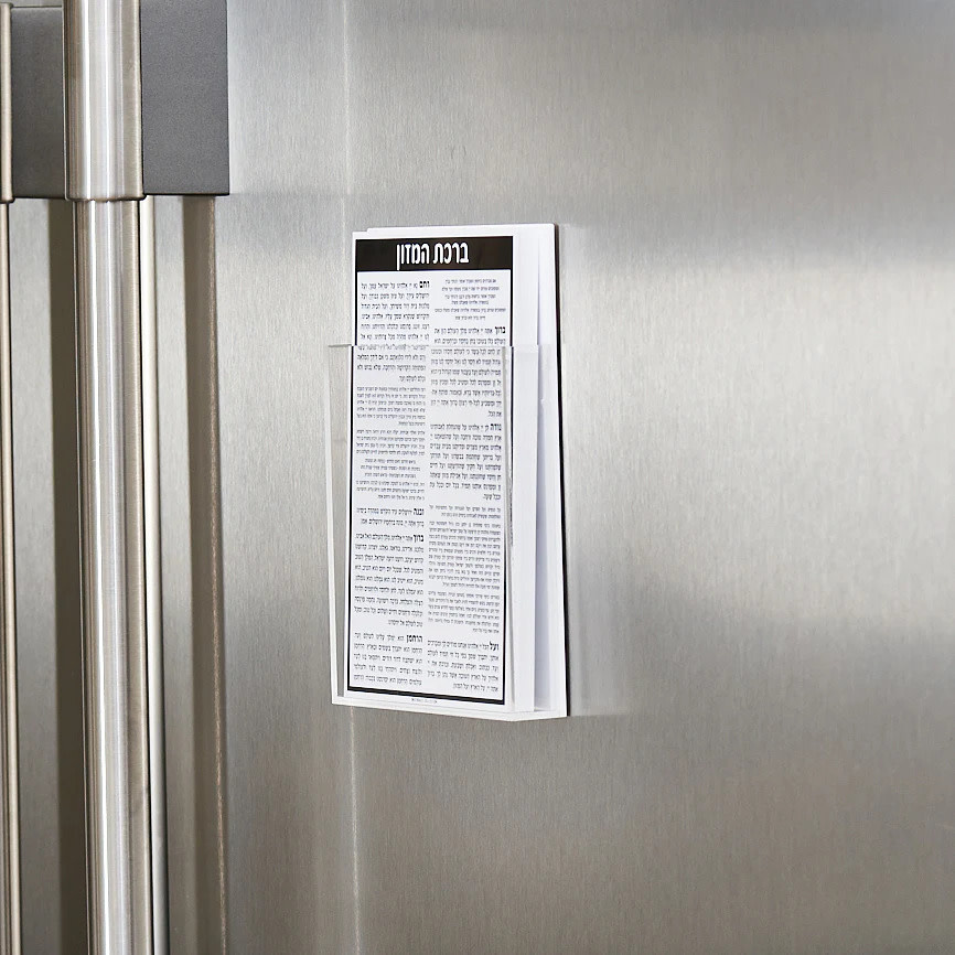 Ce superbe ensemble de bancs comprend un support magnétique à accrocher à votre réfrigérateur. Comprend 8 cartes double face en lucite blanche avec Birchas Hamazon, Al Hamichya et Borei Nifashos. Facile à lire. Essuyer. Parfait à conserver dans votre cuisine !