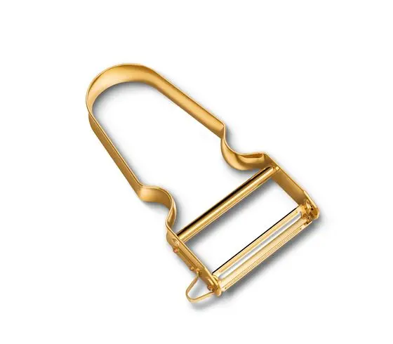 Découvrez l'emblématique éplucheur REX avec placage or. Symbole d'efficacité et de confort en cuisine depuis 1947. Préservez les vitamines de vos légumes et fruits grâce à cette lame ultra tranchante.