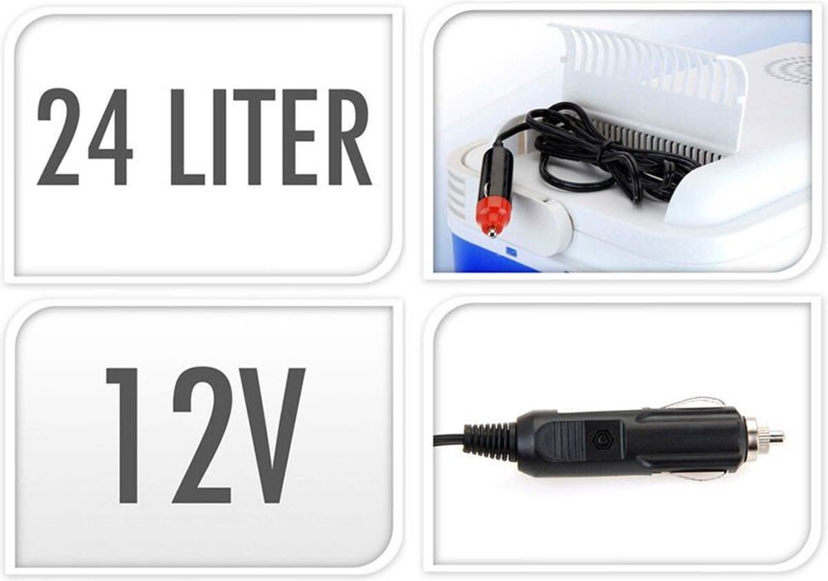 Glacière électrique pratique et robuste de 24 litres, parfaite pour les déplacements, la plage, le camping ou la voiture. Fonctionne sur 12V via une prise allume-cigare et se transporte facilement grâce à une poignée solide.