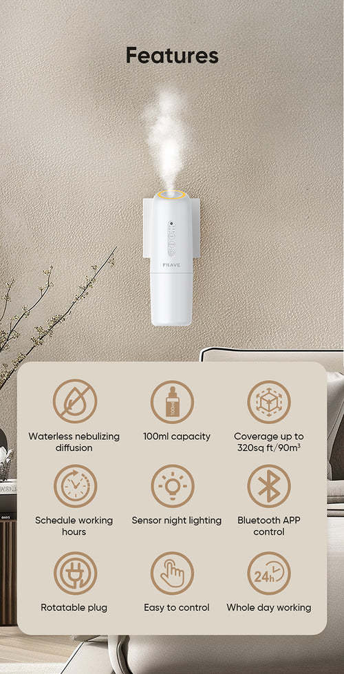 Diffuseur d’arôme intelligent avec application et couverture jusqu’à 320 sq ft. Programmez les minuteries, ajustez l’intensité et créez votre ambiance parfumée. Idéal maison, bureau ou hôtel. Commandez maintenant pour une diffusion élégante et constante.