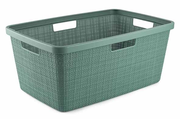 Grand panier à linge rectangulaire de 46L en différentes couleurs, idéal pour recueillir le linge. Fabriqué à partir de matériaux recyclés, un choix écologique pour chaque intérieur.