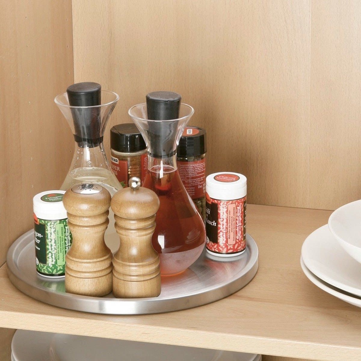 Le plateau tournant en acier inoxydable de Wenko s'intègre non seulement bien dans votre armoire de cuisine, mais également dans n'importe quel endroit où vous pouvez utiliser un plateau tournant pratique, comme dans le garde-manger ou pour les médicaments dans la salle de bain.