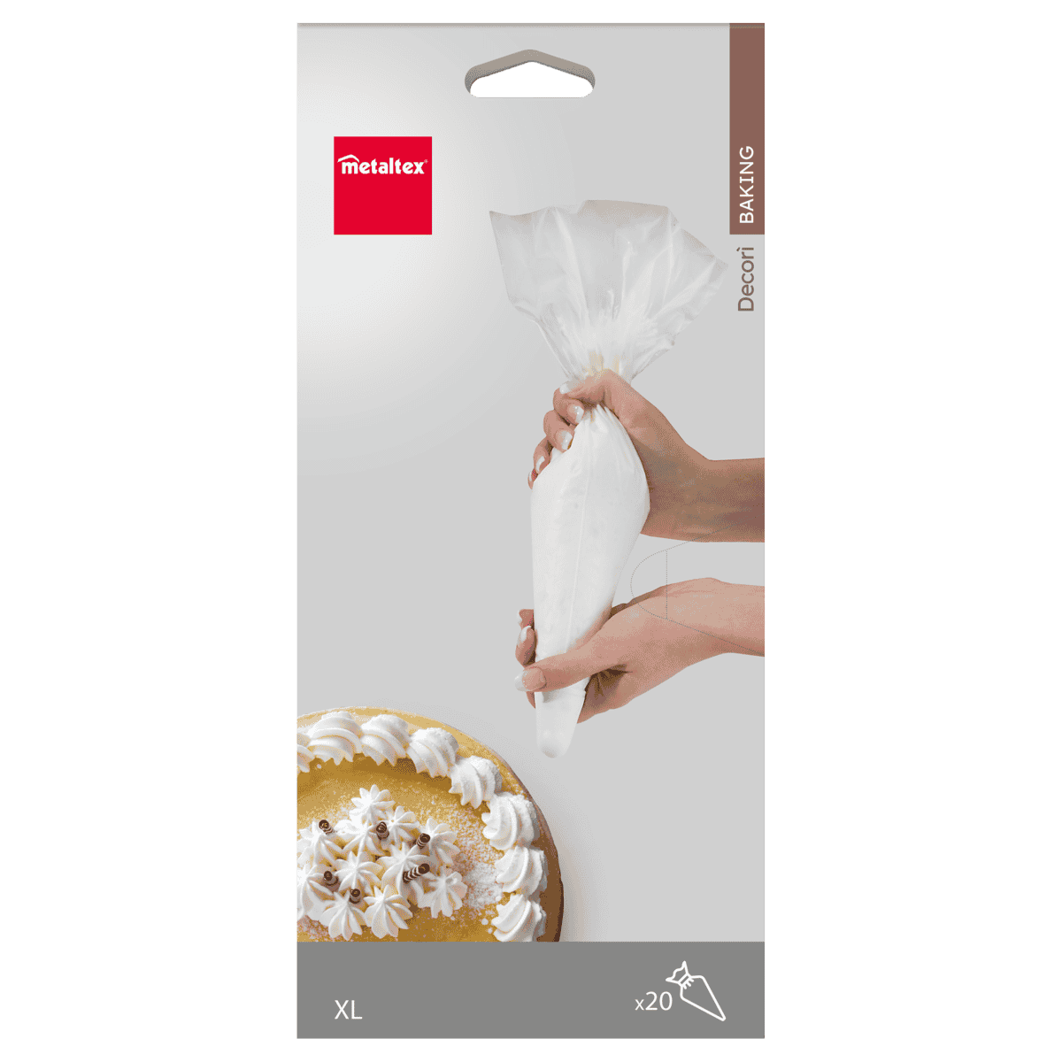 Poches à douille jetables Metaltex Dolcforno Réalisez les plus belles décorations avec ces poches à douille Metaltex. Les sacs vous permettent de décorer très longtemps car ils sont très grands. L'ensemble comprend vingt poches à douille jetables.