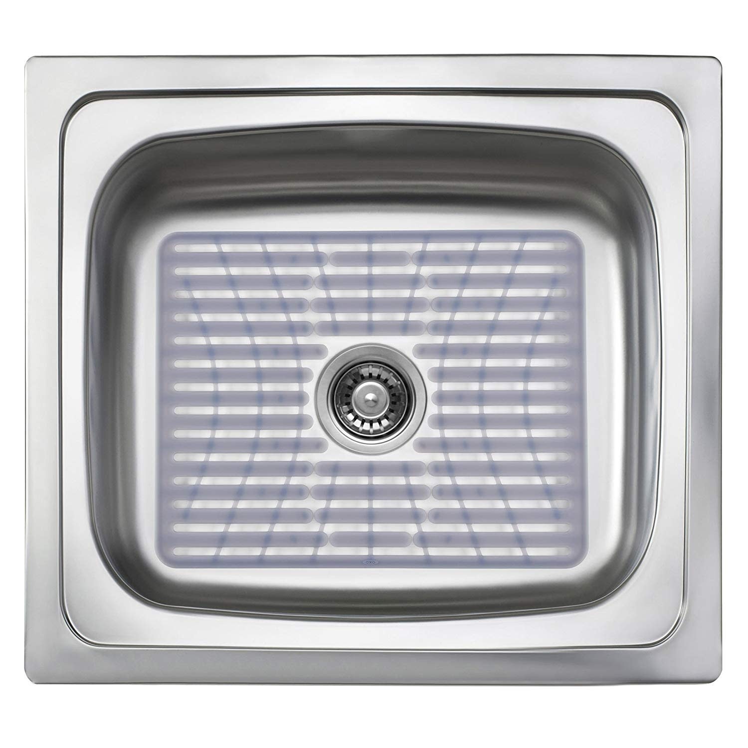 - Le silicone souple fournit un coussin pour protéger l'évier, les verres et la vaisselle des rayures et des éclats.