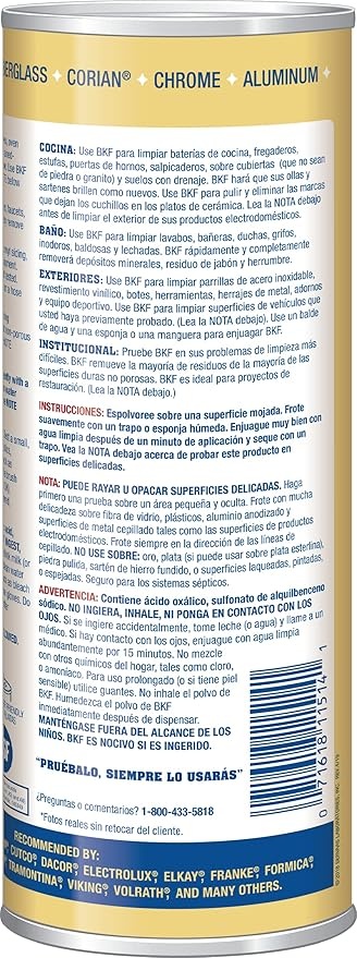 Bar Keepers Friend verwijdert roest, aanslag en vlekken van roestvrij staal, porselein en glas. De krachtige maar zachte formule is ideaal voor keuken, badkamer en buitengebruik, en zorgt voor glans en netheid.