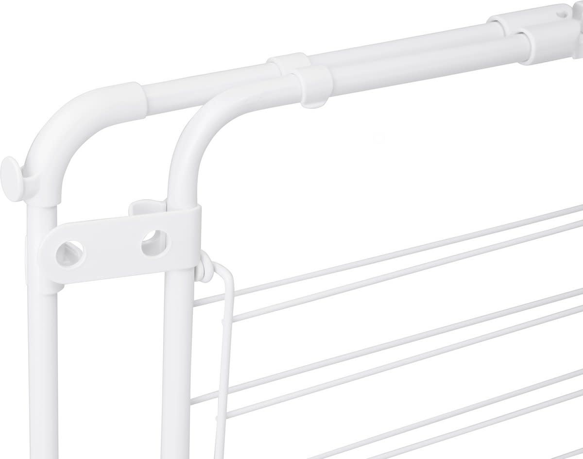 De vier stevige wielen maken het droogrek eenvoudig verplaatsbaar, zelfs wanneer het volledig beladen is. Klaar met drogen? Klap het rek compact in en berg het ruimtebesparend op. De transportvergrendelingen houden het frame netjes bij elkaar en functioneren tevens als handige haken.