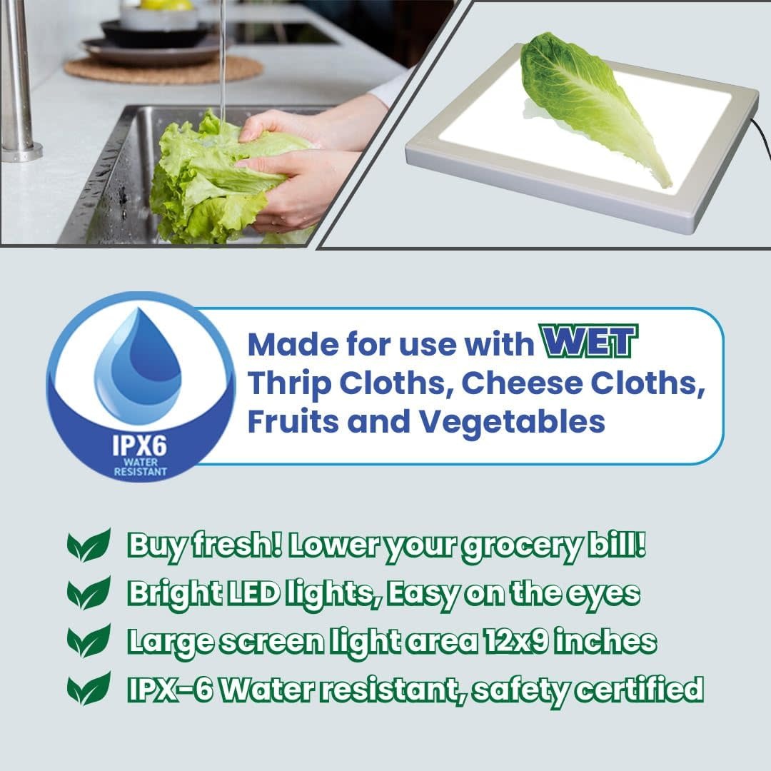 De Bug Checker MAX PRO is ontworpen om je te helpen gemakkelijk en effectief je groenten thuis te controleren. Het heeft een IPX6 waterdichtheid, wat betekent dat het beschermd is tegen hoge druk waterstralen uit elke hoek, zodat je het veilig kunt gebruiken met natte kaasdoeken en tripsdoeken.