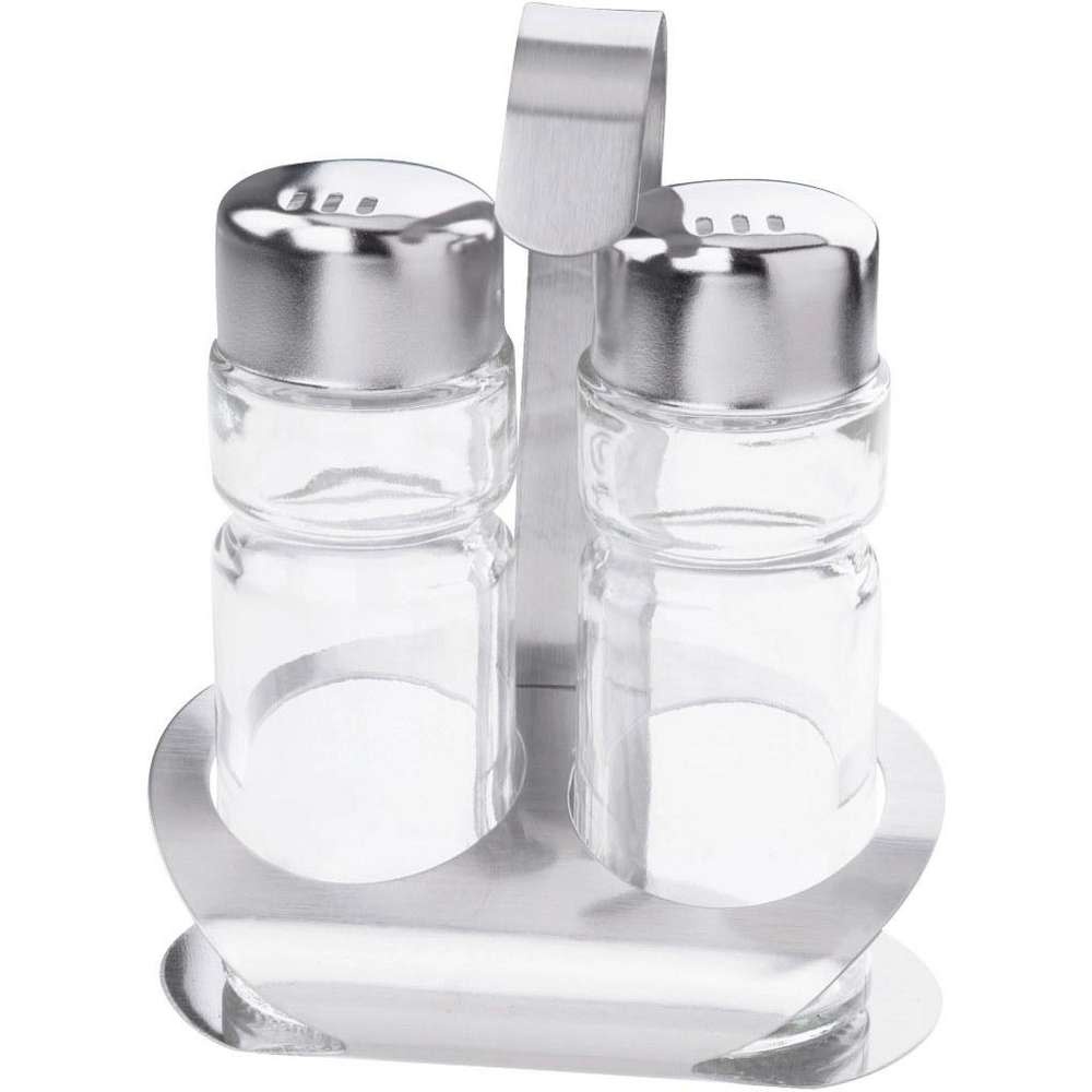 Fackelmann 3-delige BASIC zout- en pepervaatje is een must-have voor thuis of de horeca. De roestvrijstalen en glazen shakers worden samen op de RVS cruet geplaatst. Het maakt de tafelschikking op een discrete manier compleet.