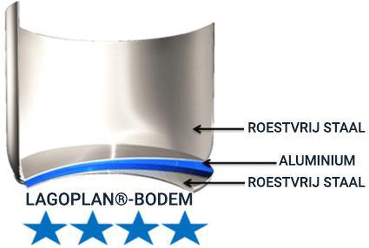 - Hoogwaardige dikke bodem voor snelle en perfecte warmteverspreiding waardoor het voedsel niet kleeft.