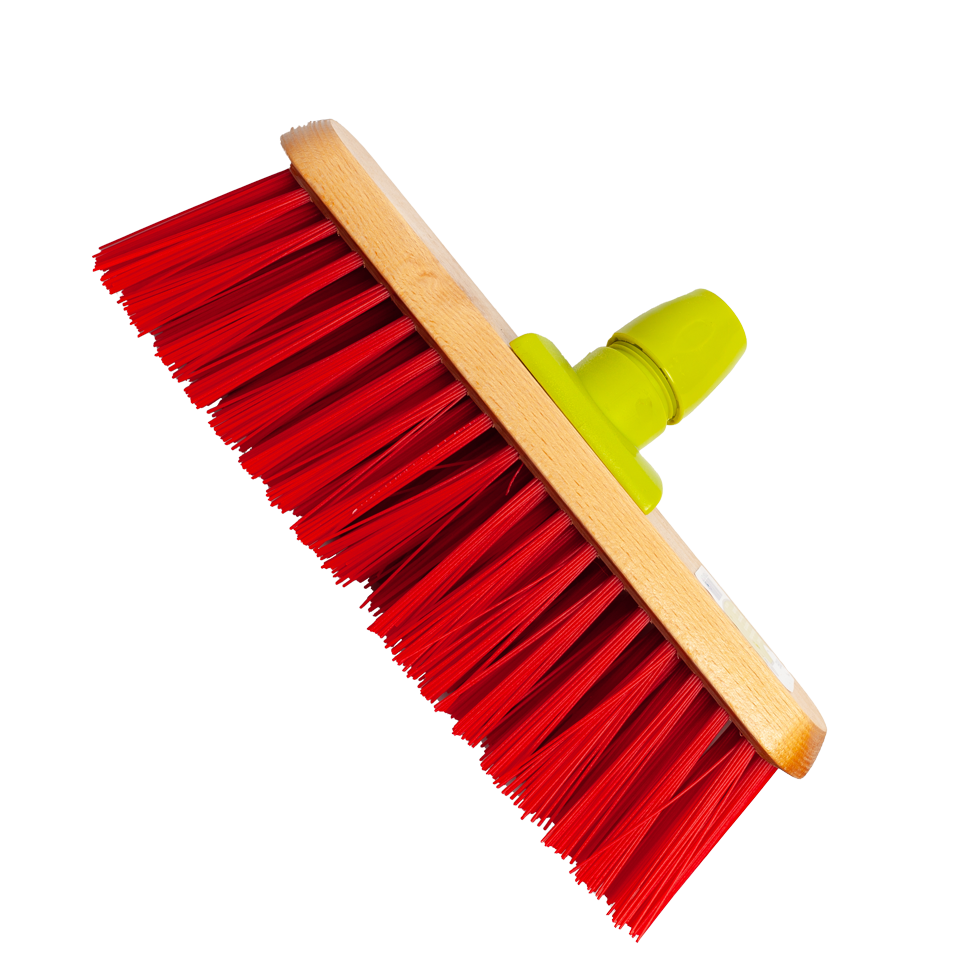 Straatkeerder Linea wood PVC. Bezem van gelakt hout en afgeronde hoeken. Bevat harde PVC borstelharen en heeft een groene steelhouder.