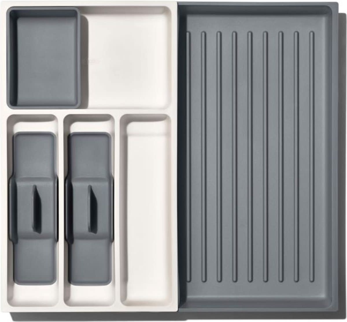 Houd je keuken strak georganiseerd met de OXO lade-organizer. Met verstelbare vakken, ruim open compartiment en antislipdesign. Ideaal voor lange of onregelmatige tools. Duurzaam, stijlvol en eenvoudig schoon te maken.