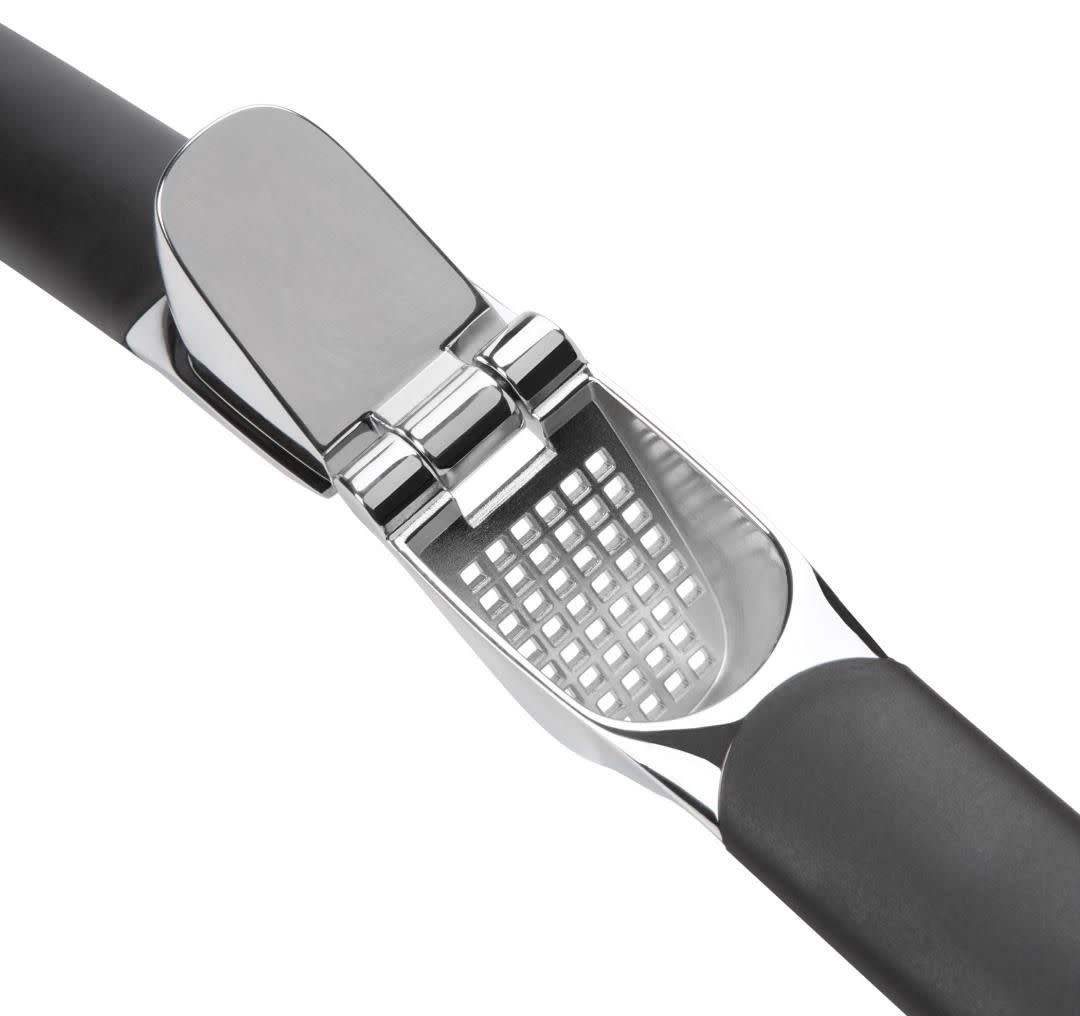 Pers meerdere knoflooktenen snel met de OXO Good Grips knoflookpers. Grote kamer, ingebouwde reiniger, anti-slip handgreep en vaatwasbestendig. Ideaal voor snel en schoon koken.