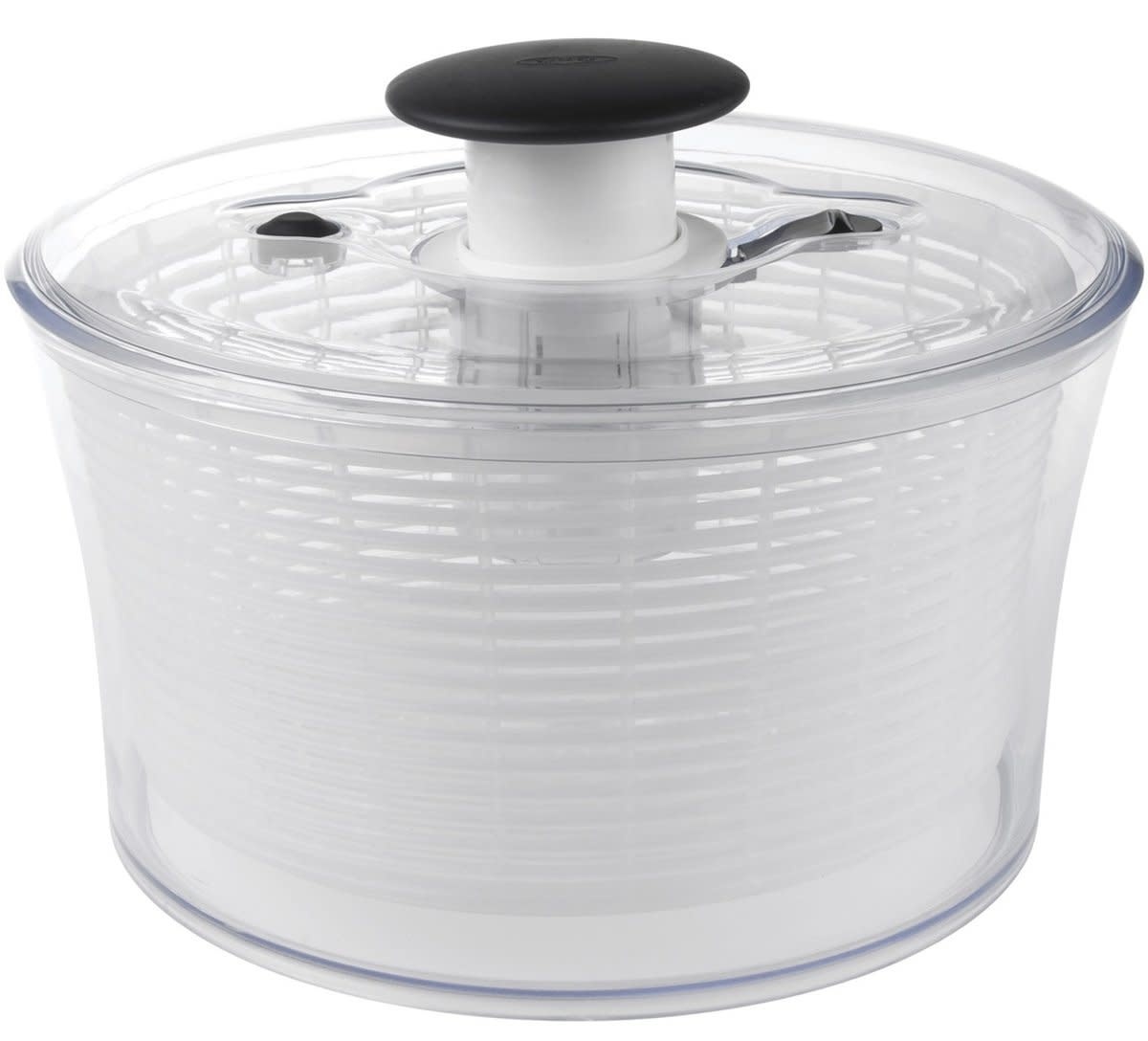 Probeer de #1 OXO Good Grips Slacentrifuge voor een snelle en gemakkelijke voorbereiding van uw salade. Na een eenvoudige druk op de antislip knop begint de mand te draaien. De simpele enkelhandige bediening maakt deze slacentrifuge een genot om te gebruiken. De ingebouwde rem stopt het apparaat automatisch zodat u de sla gemakkelijk kunt verwijderen. De kom kan ook als elegante serveerschaal worden gebruikt en de antislip bodem zorgt voor stabiliteit, zelfs bij het draaien op topsnelheid. Het deksel kan gemakkelijk verwijderd en schoongemaakt worden en kan daarnaast ook worden gebruikt voor opslag.