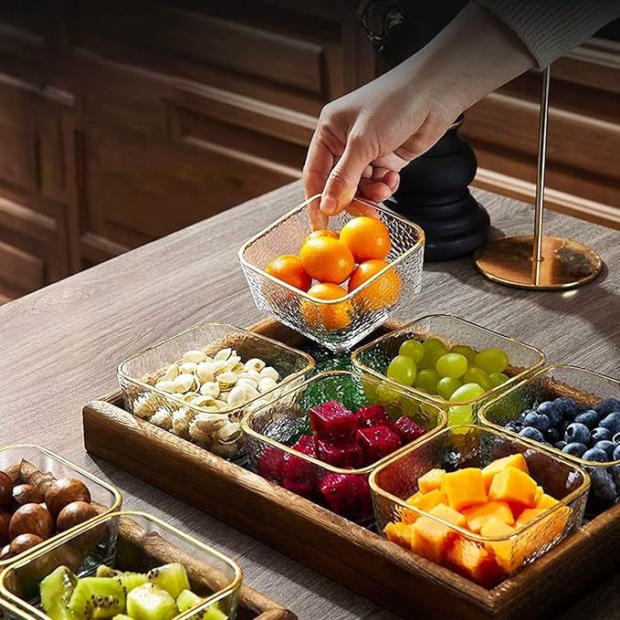 Set van 6 Paldinox mini glazen kommetjes met gehamerd oppervlak en gouden rand, ideaal voor desserts, fruit of kleine hapjes.