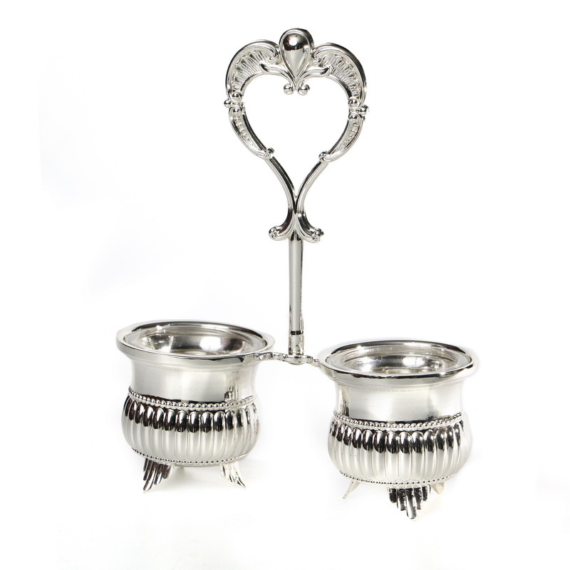 Paldinox Verzilverd Dubbel Zoutvaatje met Handvat en Glazen Inzet