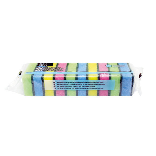 Ideaal om je te helpen bij je dagelijkse afwas, deze schrobpad wordt geleverd in een set van 10 stuks in verschillende kleuren. Dit schuimmodel heeft een lengte van 9 cm, een breedte van 6 cm en een dikte van 3 cm.