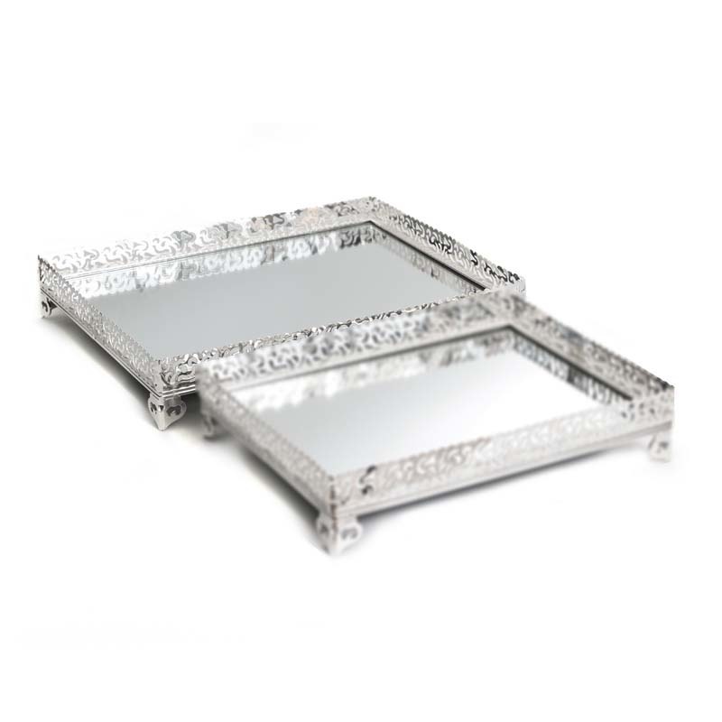 Set 2 Mirror Tray Silver Plated L:39X30X7cm M:33.1X24X7cm single
