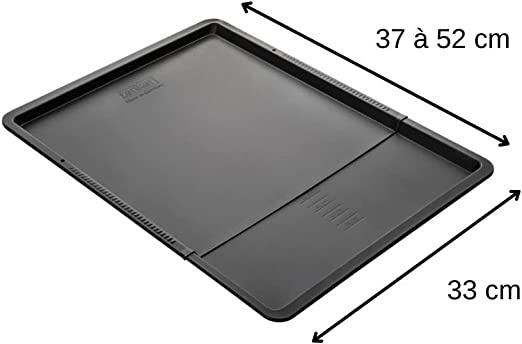 Universele Uitschuifbare Bakplaat - Zwart Teflon - 37 x 33 x 1.5 cm / 52 x 33 x 1.5 cm