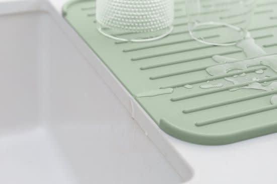 Need some extra draining space? Just whip out this Brabantia SinkSide Silicone Dish Drying Mat. Soft and non-skid so less chance of chipping.