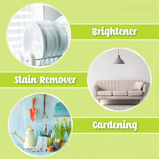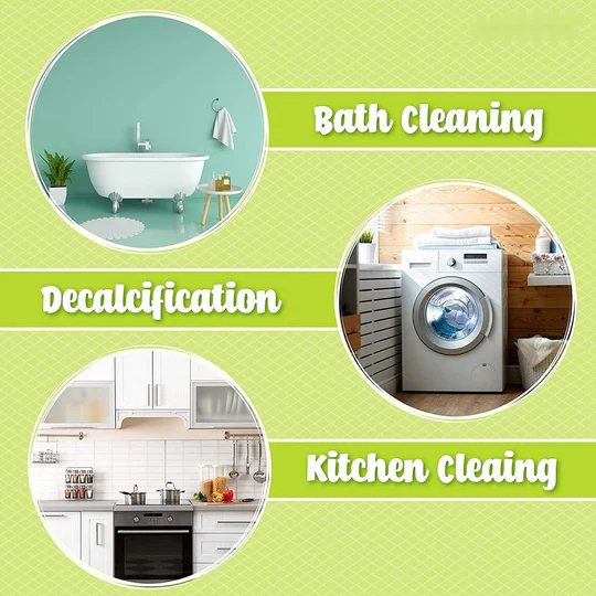 Removes lime, shines surfaces, cleans rust. Multi-use, indoors and outdoors. Mix 5 tbsp citric acid in 1L water, spray on surfaces (chrome, stainless steel, ceramic, plastic), and rinse.